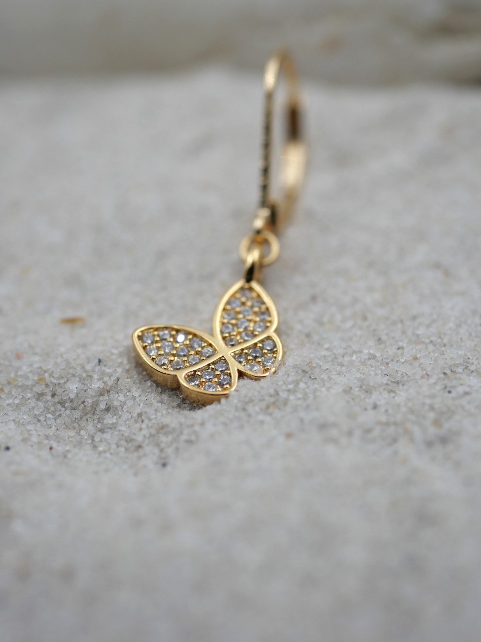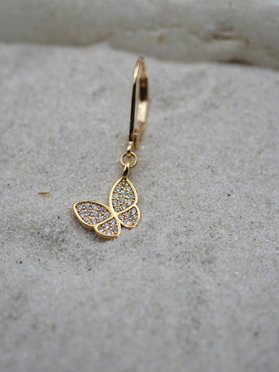 Mono boucle avec un papillon strassé, plaquée or. Exclusivité site.