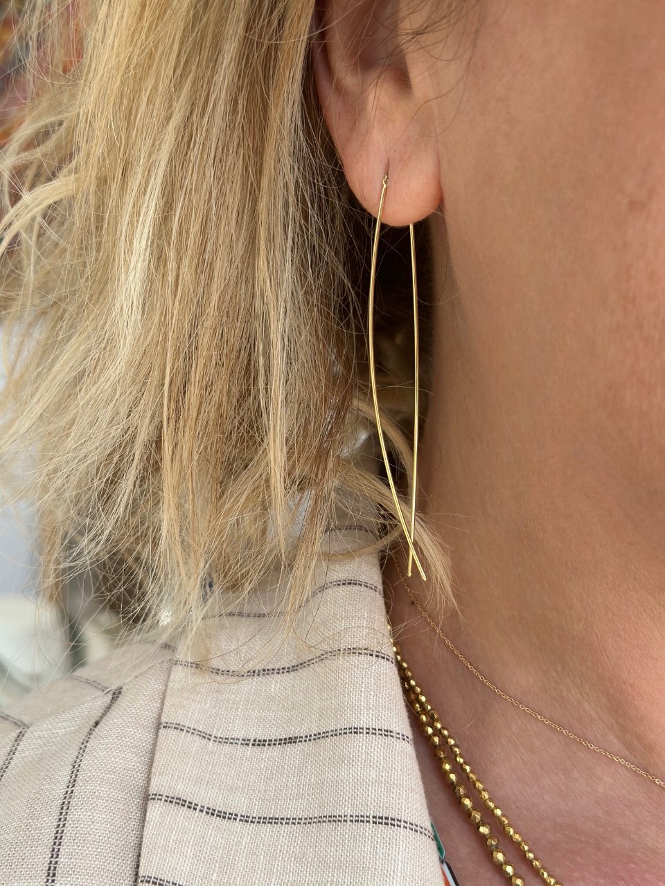 Boucles d’oreilles logues composées de 2 tiges fines, en argent 925 plaqué or 3 microns.