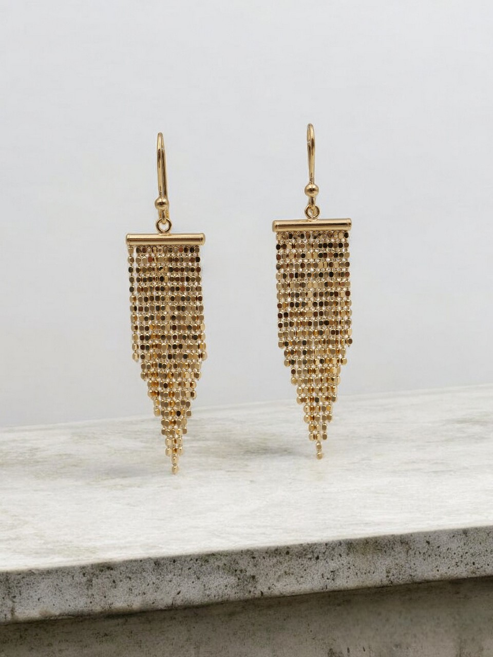 Ces boucles d’oreilles longues, aux 13 chaînes délicates, plaquées or 3 microns 18 carats, dansent à chaque mouvement. Glamour assuré ! Elles vous accompagneront pour vos soirées habillées ou réhausseront votre look quotidien avec élégance.