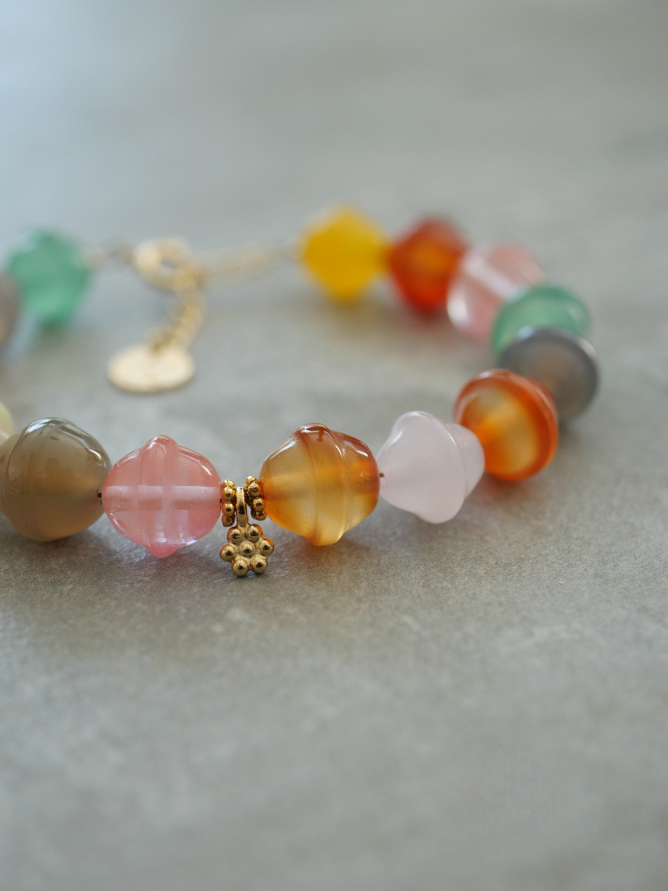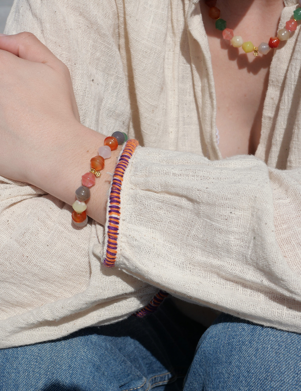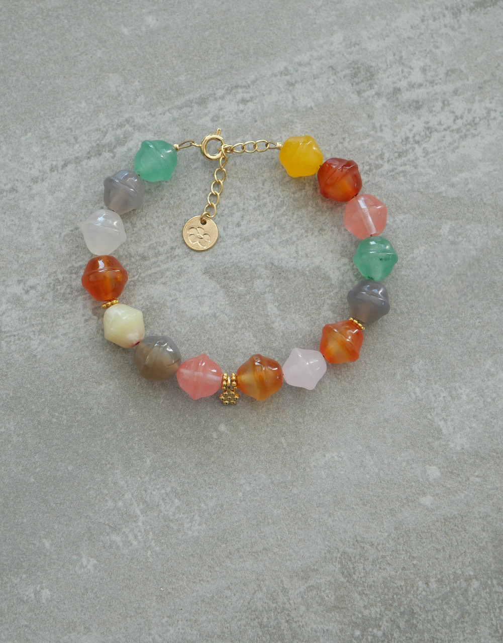 Bracelet en agates multicolores et perles plaquées or 3 microns