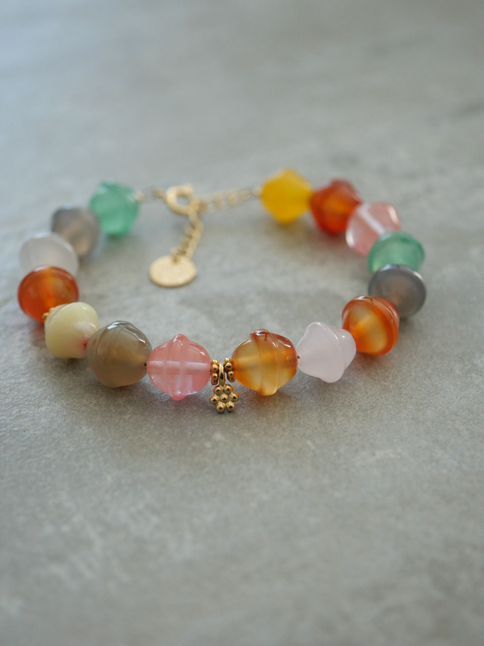 Bracelet en perles multicolores et perles plaquées or 3 microns