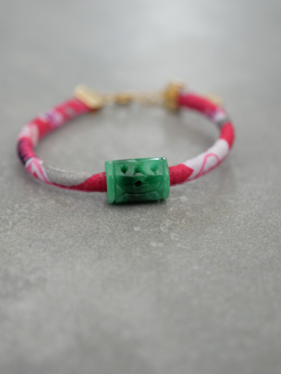 Collier sur cordon vert ou rose avec un pendentif en jade.