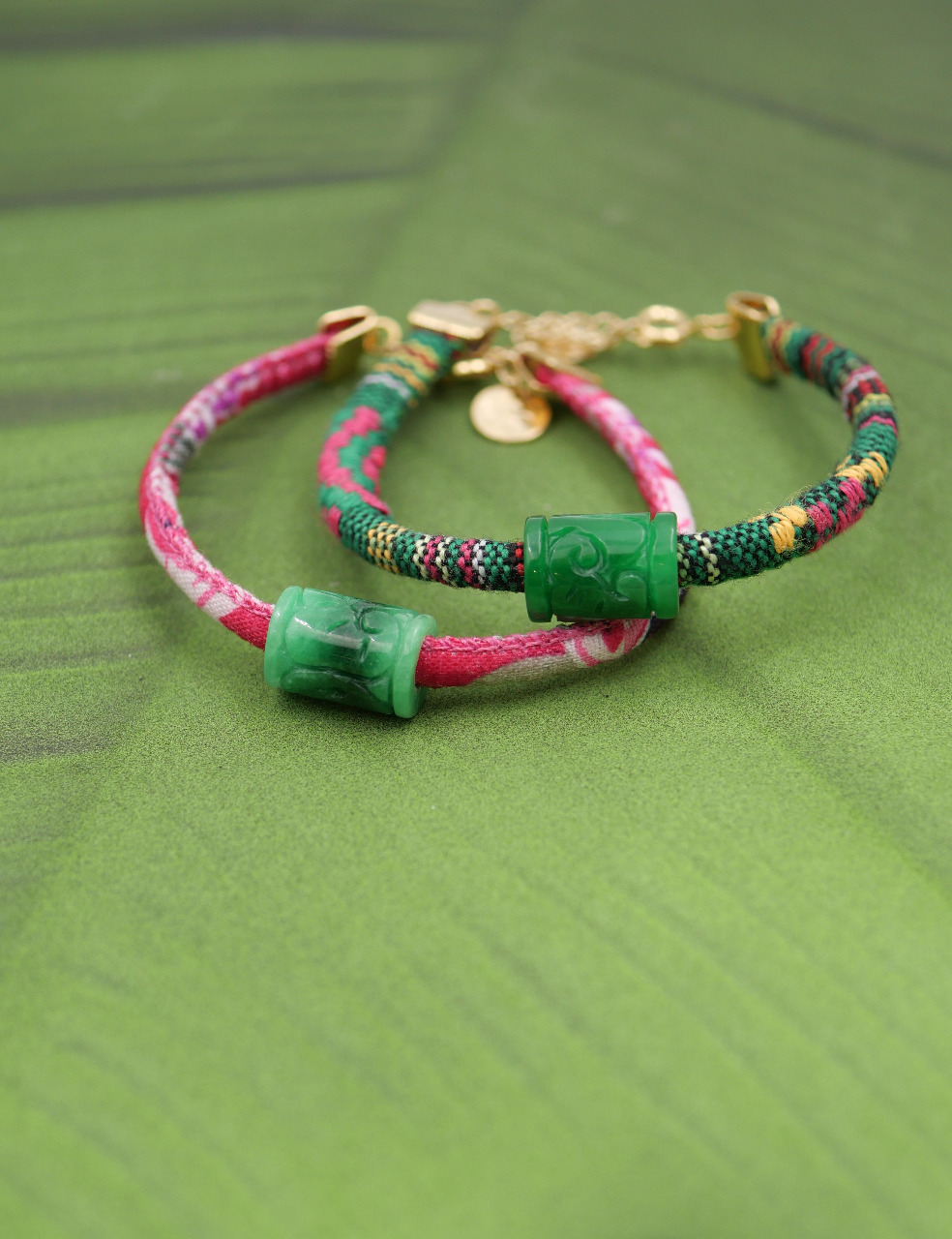 Les bracelets Max sont des bracelets sur cordon, vert ou rose, avec un pendentif en jade. Une touche bohème pour ces bracelets colorés qui mettront en valeur toutes vos tenues.