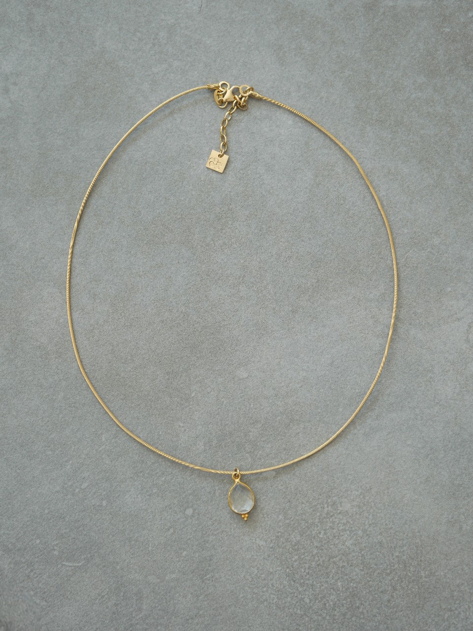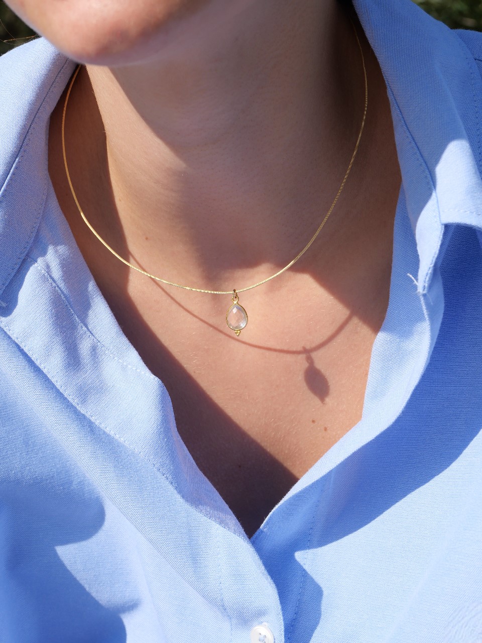 Collier câble plaqué or 3 microns avec un pendentif en cristal en forme de goutte