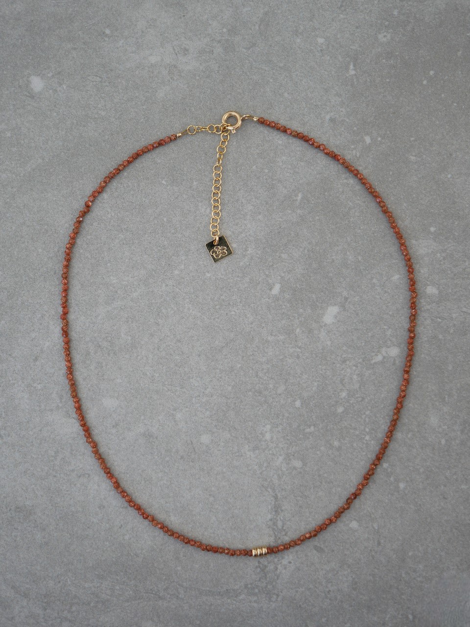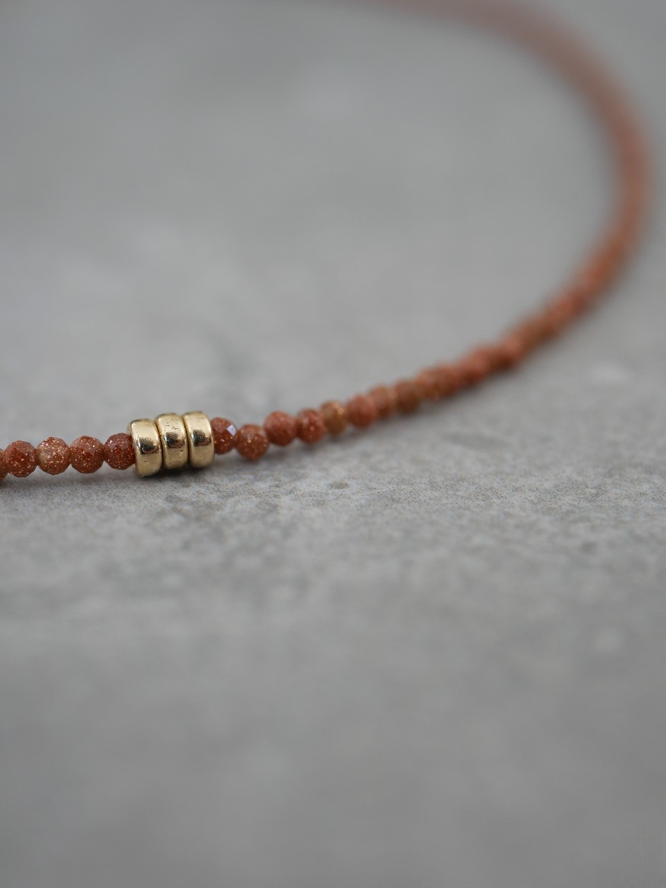 Collier ras de cou composé de Gold sand stone, et d’une perle rondelle en Gold Filled.