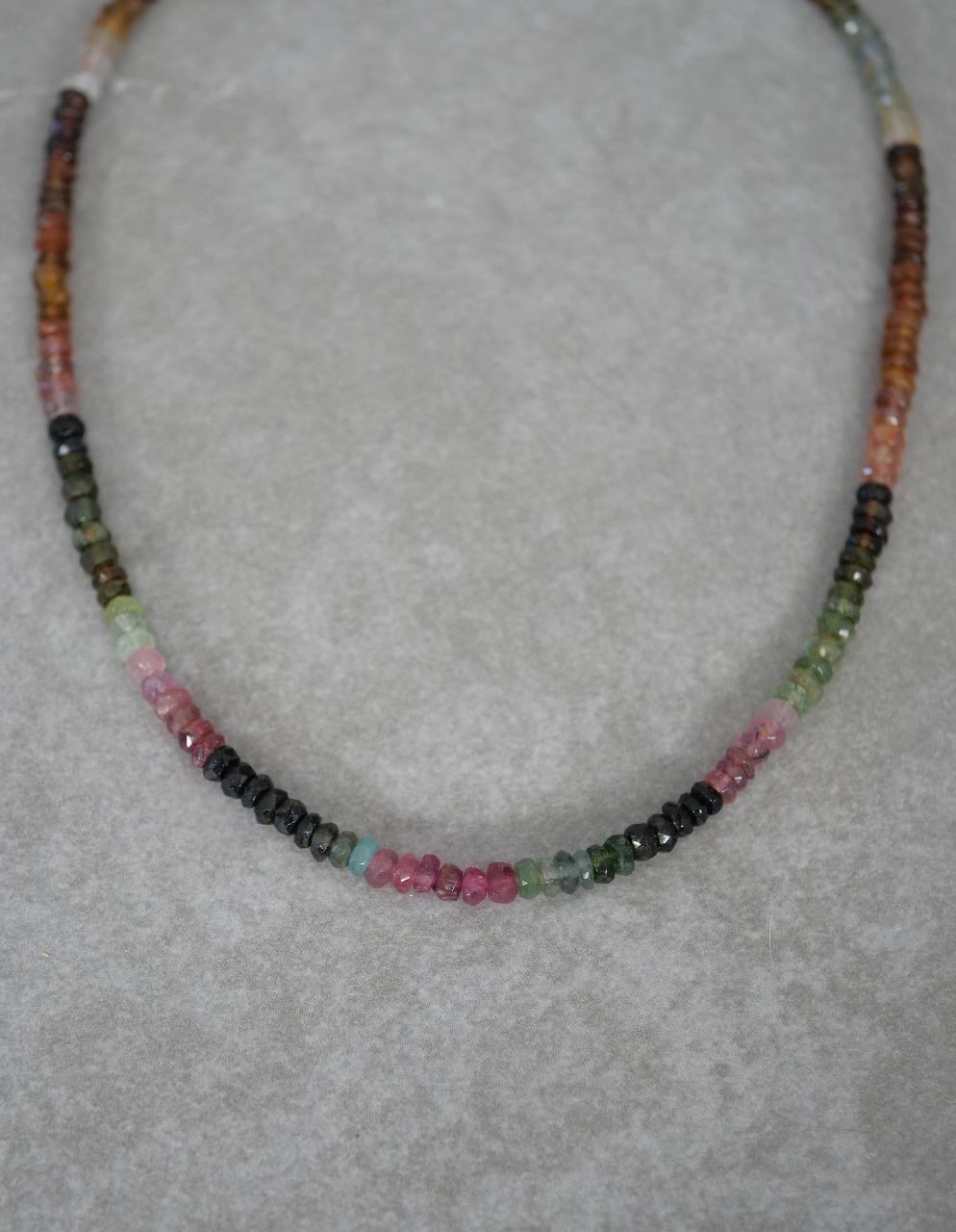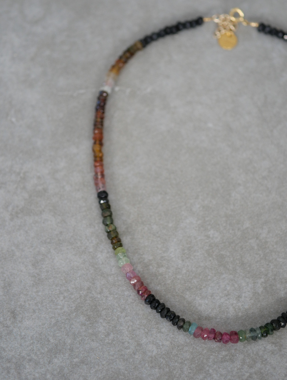 Le collier Rosita est composé de tourmaline multicolore facettées. Une magnifique pièce qui saura accompagner tout vos looks !
