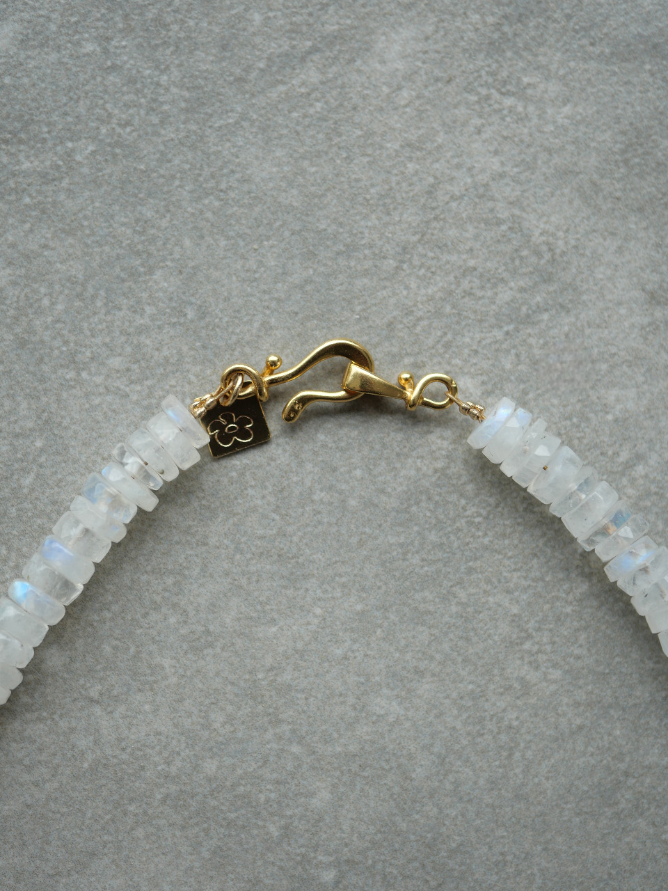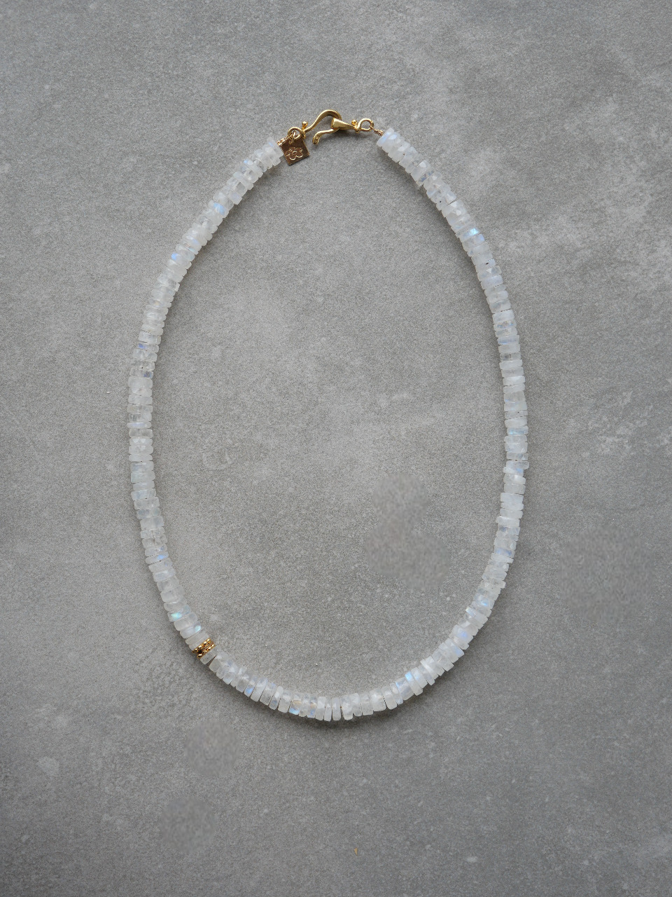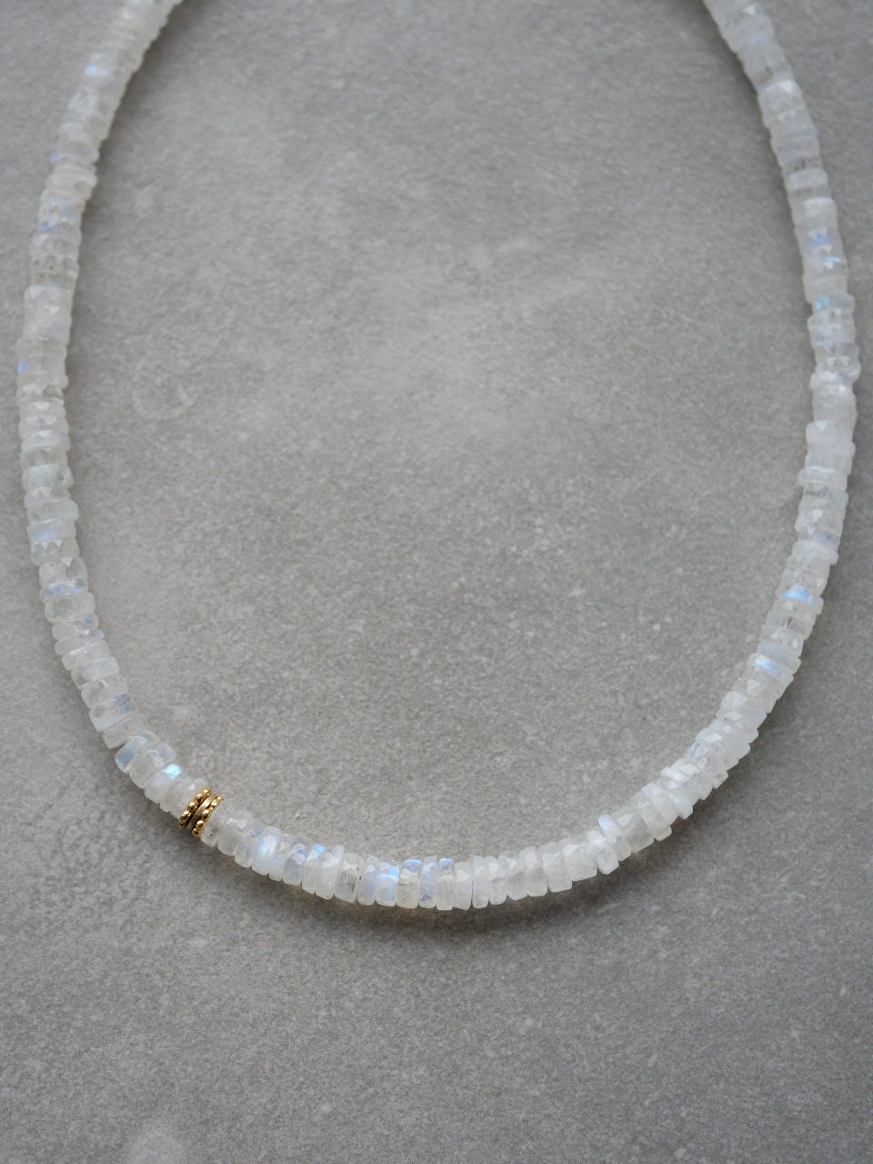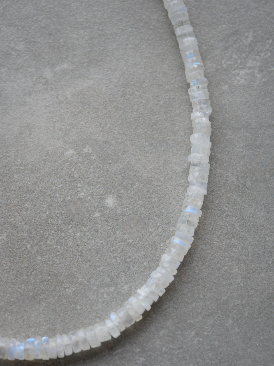 • Pierre de lune heishi 6*6.5 mm. La pierre de lune est une pierre de mystère, elle aide à améliorer le côté intuitif de l’esprit. Elle nous encourage aussi à être attentif aux cycles dans nos vies. C’est aussi une pierre de douceur et de féminité, qui procure calme et apaisement. Elle développe l’intuition et la créativité.